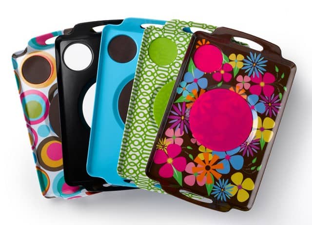 You can use the silicone mats as trivets, hot pads, even jar openers! Perfect for breakfast in bed, eating outside, and of course in front of the TV. It only measures 19 x 13 ” and you can buy only individually item.For only $24.50, it’s available in many colors and models:  green trellis, flower power, black & white, turquoise & chocolate, and super Dots